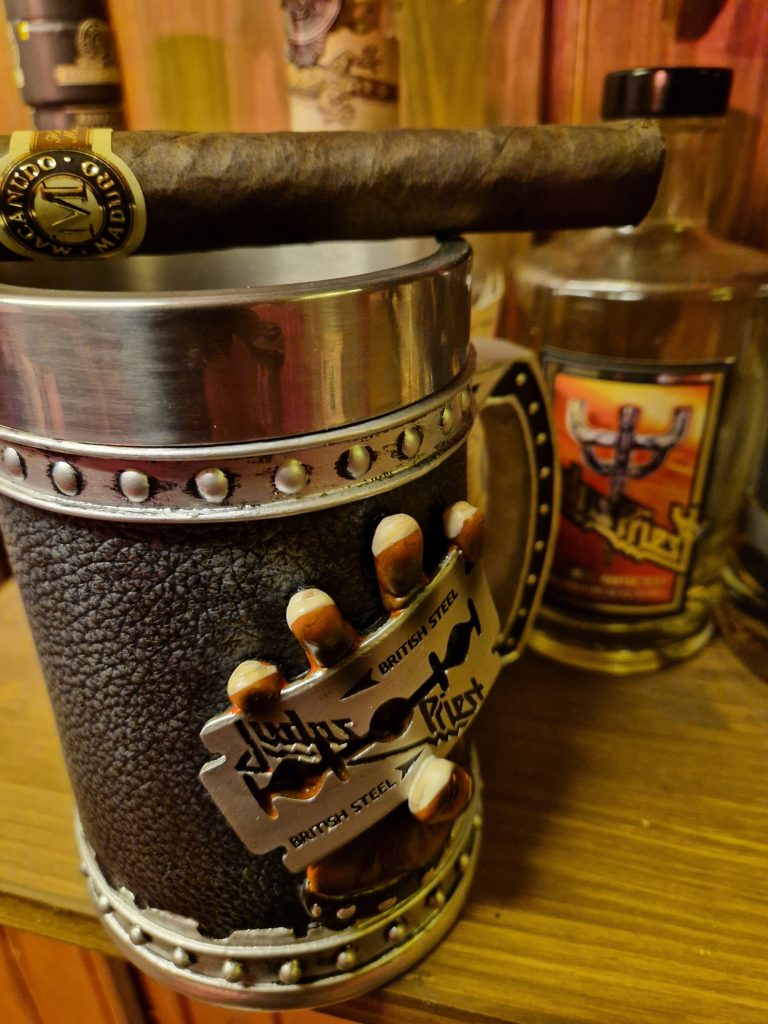 Pappisperjantain tumma toveri Timo, 8 maaliskuun, 20248 maaliskuun, 2024 Toisia päiviä sitä odottaa enemmän, kuin toisia. 8.3.2024 oli itselleni päivä, jota odotin, kuin ripuli-Reiska puhtaita kalsareita. Tällä päivämäärällä heavy-jättiläinen Judas Priest julkaisi uuden pitkäsoiton Invincible shield. Ensikuuntelu vaati luonnollisesti sikarin toverikseen. Levyyn tutustumisen lähes pyhää tehtävää kannattelemaan valitsin Macanudo maduron. Olen varmaan tämän sikarin polttanut jo aiemminkin, mutta mitään varsinaista muistijälkeä se ei ole onnistunut muistini höttöisiin syövereihin painamaan, joten tartutaan pässiä sarvesta ja maistellaan uudestaan. Arviointi oli haasteellista, koska samalla istumalla piti arvioida uutta levyä ja sikaria, mutta multipaskaus on välillä hyvästä, eikä tätä elämää muutenkaan niin vakavasti kannata ottaa. Sikarin alun tukkoisuus vähän säikäytti, mutta muutaman kiihkeän vedon jälkeen savu alkoi tulvahtelemaan, kuin höpöpuheet Ameriikan oranssin ex-presidentin suusta. Viime aikojen poltteluiden euforia kenties on luonut valheellisen kuvan kaikkien humidoriasukkieni erinomaisuudesta, koska nyt pölli tuntui varsin keskinkertaiselta. Häilyvän tumman suklaan miedosti makean aromin lisäksi sikarista oli vaikea löytää mitään erityisen noteerattavia makuja. Pötkö paloi kuitenkin hyvin loppuun saakka ilman turhia kommervenkkeja, eikä nostanut ainakaan ärtymyksen visvaista päätä, joten ihan ok meininki. Macanudolla on kuitenkin ollut parempaakin tarjolla, joten ei näistä mitään juhlapäivien seremoniamestaria tullut. Kokonaisuus: Syvä keskinkertaisuus Juoma: Judas Priest rommi Musiikki: Judas Priest – Invincible shield: ”Levystä on tullut heruttelubiisejä läpi talven, joten osa materiaalista oli jo tuttua. Kokonaisuutena Priest jatkaa raskaan heavymetallin nahkaan ja niitteihin verhoiltuna tiennäyttäjänä, mutta välillä meno oli sellaista, jota en olisi heti pappisveisuille tunnistanut, koska mielestäni esimerkiksi kitarasoolot kuulostivat joissain biiseissä enemmän jopa Helloweenilta, kuin Priestilta. Halfordin ääni on kuitenkin kahdeksattakymmenettä käyvälle miehelle aivan uskomattomassa iskussa. Biisit olivat pääsääntöisesti tuttua ja tiukkaa Priestiä ja aika näyttää mitkä sieltä nousevat raivokuunteluun päätyviksi joka paikan kyntäviksi työhevosiksi. Erityisesti odotan, miten levyn kappaleet toimivat livenä. Sehän nähdään onneksi jo muutaman kuukauden kuluttua kesäkuussa Tampereella. Pidän tästä paljon, enkä malta odottaa, että saan vinyylit levylautaselle, jolloin pääsen oikeasti kuuntelemaan kappaleet sellaisena, kuin ne kuuluukin kuunnella.” Dominikaaninen tasavalta macanudomaduro